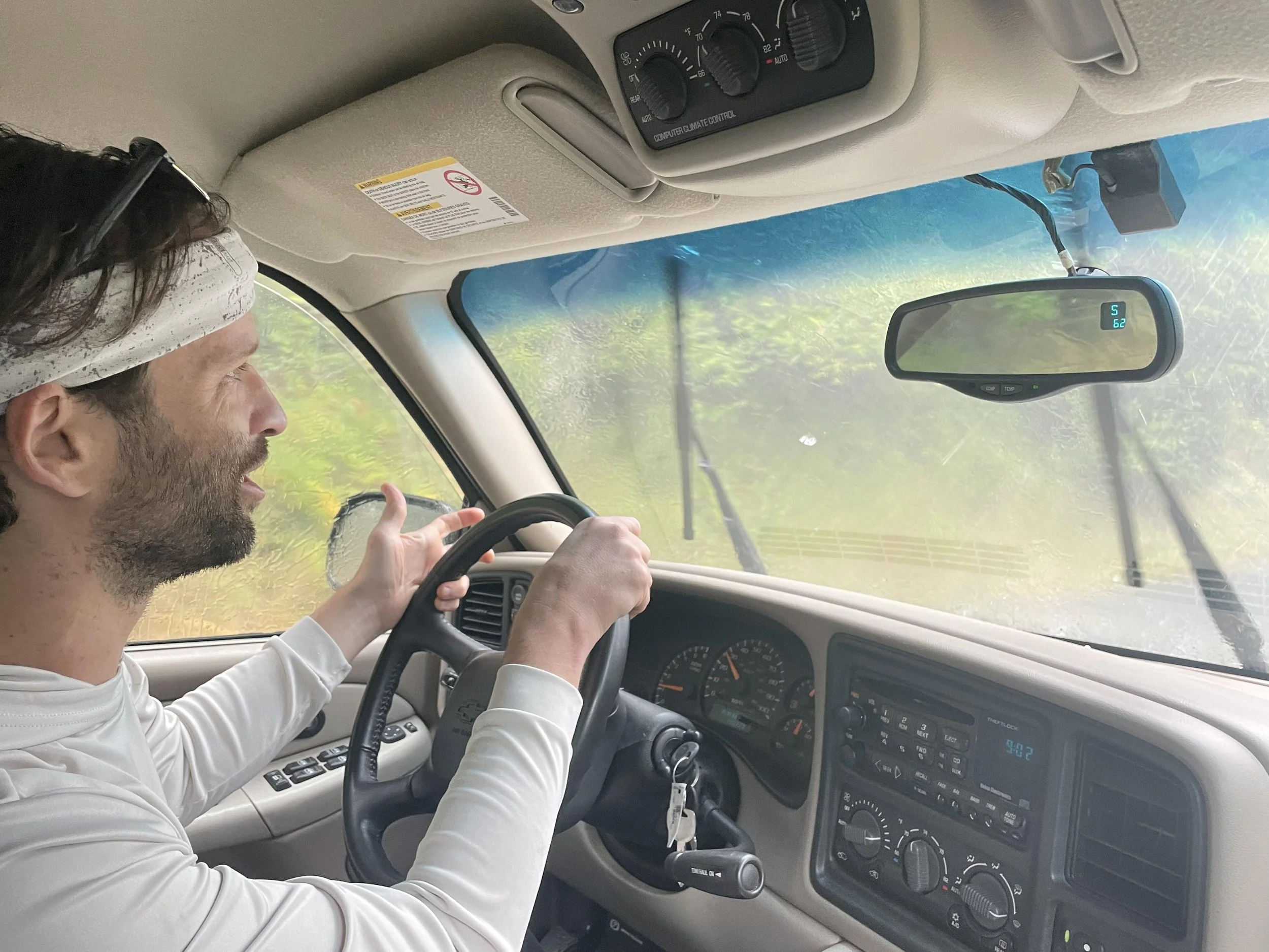 The car was aptly named “Freebird”. That thing ripped. As we continued on the road we heard the radio go off saying that there's a weather alert in the area and that NICKEL sized hail was incoming. No kidding. We were off to a good start and these volunteers were so dedicated that they drove through a nickel-sized hail storm to get to camp!