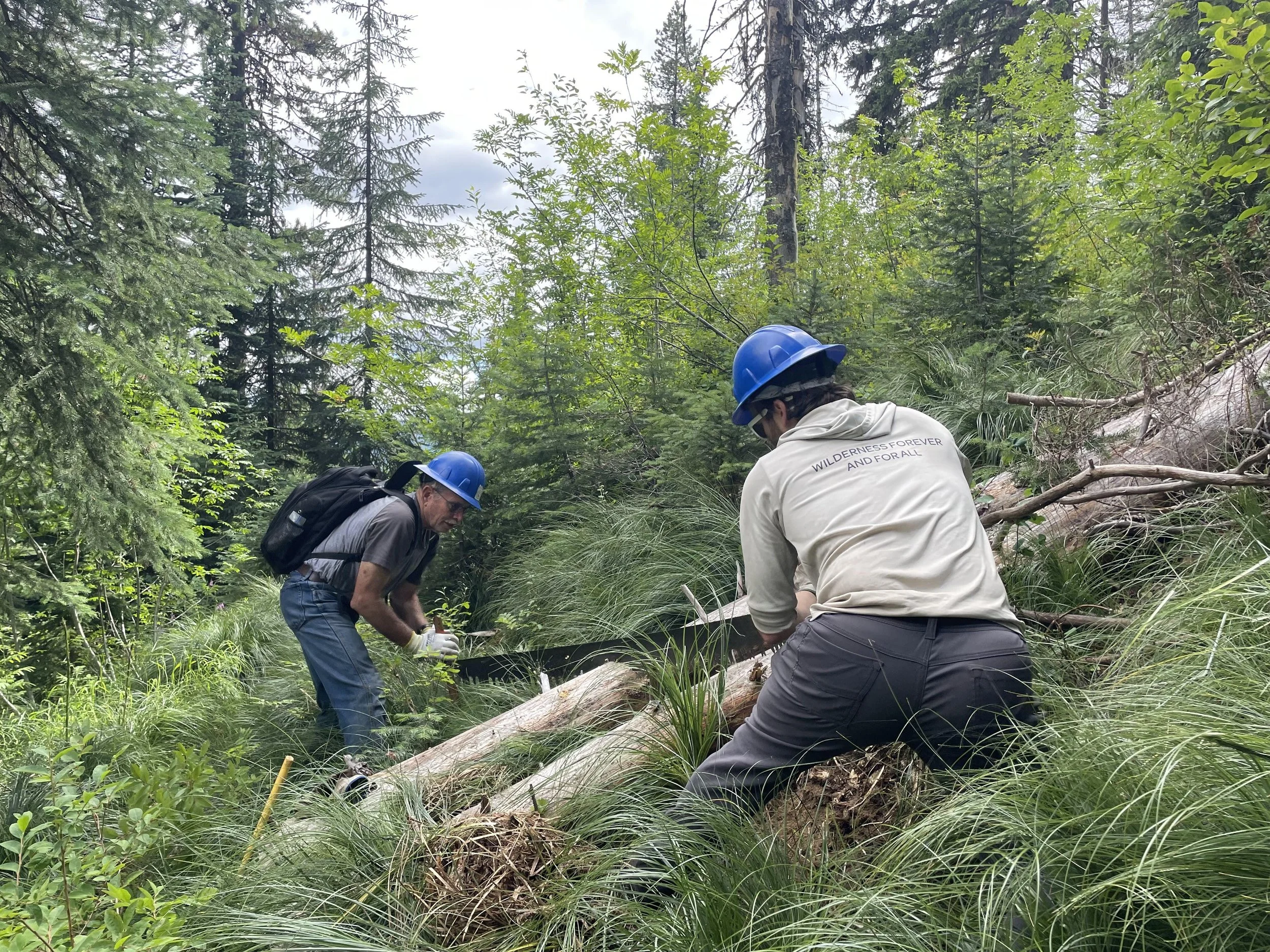 Jackie and Dan cutting a log further out of the trail to open it up to those with pack animals.