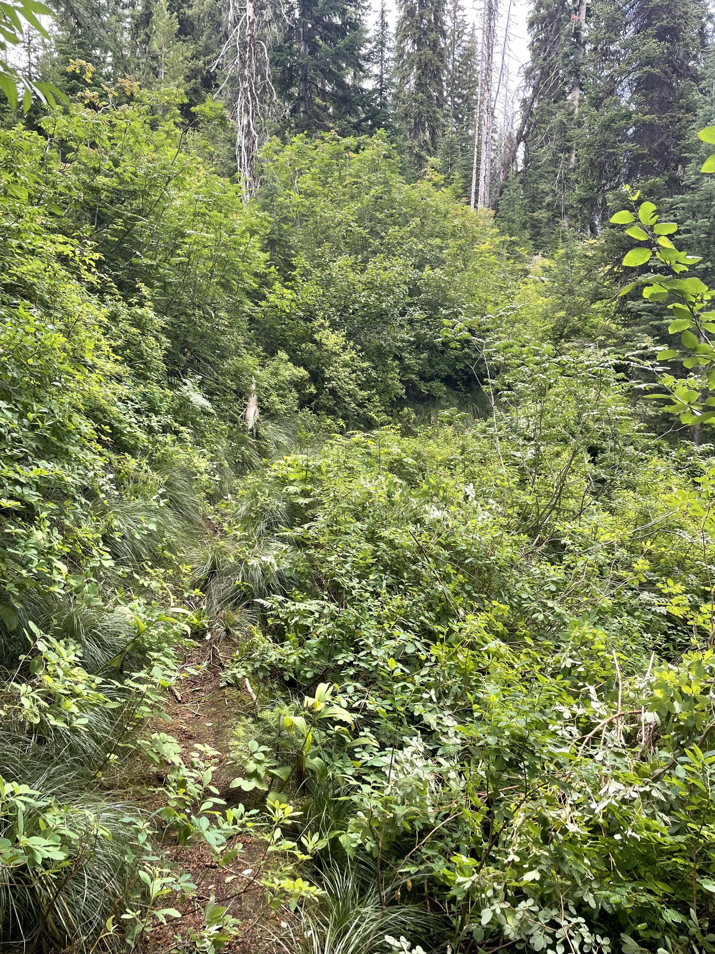 This was our second work day, and to sum it up: we brushed, brushed, and brushed. We would leap-frog around each other to keep moving on the trail and keep where we were working interesting. Connor and Dan also accomplished a lot of drainage work together.
